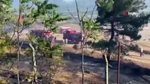 Bursa'nın Nilüfer ilçesinde ağaçlık alanda çıkan yangın söndürülmeye çalışılıyor. Bu sırada alevler bölgedeki bazı kulübelere de sıçradı.