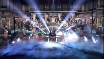 Watch in awe as a group of guys in formal dresses puts on an exceptional performance.