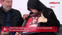 İstanbul İstiklal Caddesi'ndeki bombalı terör saldırısında eşi Yusuf Meydan (34) ile kızı Ecrin’i (9) kaybeden Mevlüdiye Meydan (33), patlamanın etkisini sırtında hissettiğini belirterek, “Çok küçük bilinç kaybı yaşadım. Yusuf ile Ecrin’in yerde yattığını gördüm, bir adım bile atamamışlardı. Kızımın ve eşimin kanı yerde kalmasın" dedi.