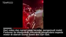 Video itu memperlihatkan sebuah mobil Toyota Fortuner menabrak gerobak sate padang pukul dini hari, 1 Juni, di Jalan RS Fatmawati Raya (Pasar Blok A lama).
