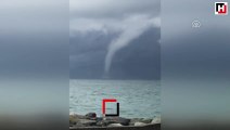HATAY'da etkili olan yağışlar sonrası denizde hortum oluştu.