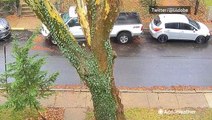 A sky camera from a local National Weather Service office shows a meteor darting over downtown Pittsburgh, Pennsylvania, on the night of Dec. 1.
