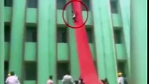 : "I was practicing the connection of my toe touch tuck to try out for the varsity cheer team and my first time trying it ended like this. I was at desert tumbling with a friend! I was a gymnast for 10 years prior to this accident and never did anything like this before. I did not end up getting injured I only was stiff for a few days!"