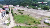 Akdeniz'le birleşen sel suları iki ilçenin kıyı şeridini kahverengiye bürüdü