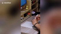 This talented artist was commissioned by a client to draw a creative portrait of a dog and its owner. All the artist used was a black pen to draw scribbly lines that made up the entire picture.