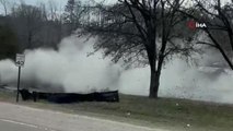 ABD'nin Tennessee eyaletinde bir yük treni, hemzemin geçitte bulunan römorka çarptı. Römork sürüklenerek parçalara ayrılırken, tren daha sonra raylardan çıkarak devrildi.