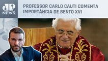 Papa emérito Bento XVI faleceu neste sábado (31), aos 95 anos. O ex-pontífice teve uma trajetória polêmica ao renunciar ao cargo. Pela primeira vez na história um papa participa do funeral de outro papa. Para comentar o assunto Antônio Flávio Testa.