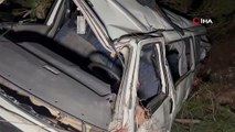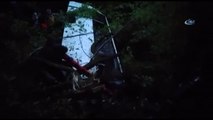 40 metreden uçuruma yuvarlanan minibüs ağaca çarparak asılı kaldı: 3 yaralı
