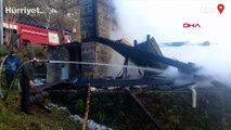 RİZE'de, yangın çıkan evde alevler, bitişikteki yapıyla araçlara da sıçradı.
