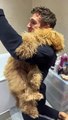 Occurred on December 2022 / UK: "Cheddar the Goldendoodle doesn’t want her nails clipped. My husband has been trying for ages and only managed to do one so far. She climbs up his arm and just hangs on for dear life!"