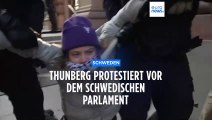 Polizei trägt Greta Thunberg vor dem schwedischen Parlament weg