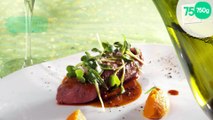 Selle d'agneau vapeur à l'estragon,carottes au cumin et jus déglacé à l'eau de carotte avec un champagne de vigneron extra-brut