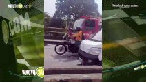 Qué berraco susto Hombre que iba en moto quedó debajo de un camión en el puente de Zamora