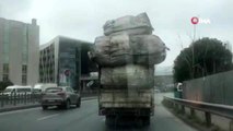 Sultangazi-Arnavutköy yolunda bir kamyonetin kasasında taşınan plastik borular, araçlara çarparak trafiği tehlikeye attı. Plastik boruların çok sayıda araca çarptığı anlar kameraya yansıdı.