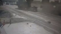 HATAY - Hatay'ın Payas ilçesinde, önüne köpek çıkması nedeniyle ani fren yapan tıra arkadan gelen tahıl yüklü başka bir tırın çarptığı anlar, bir işyerinin güvenlik kamerasına saniye saniye yansıdı.