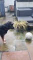 Dog Dumbfounded by Frozen Ball