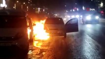 Alev alev yanan otomobili yol kenarına çekti, park halindeki otomobili de yaktı
