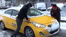 Gaziosmanpaşa'da yollar buz tuttu yolda kalan minibüsü yolcular itti