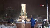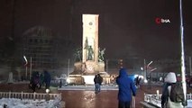 Kar yağışı Taksim Meydanı'nda tipiye dönüştü