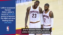 Kyrie Irving 'acknowledged greatness' and is thrilled for LeBron James after he broke the NBA scoring record.