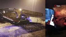 EKSKAVATÖR YÜKLÜ TIR DEPREM BÖLGESİNE GİDERKEN DEVRİLDİ