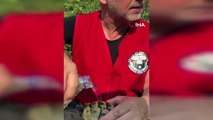 Yangın bölgesinde yürek ısıtan görüntü... Alevlerden kurtardığı kaplumbağaya su içirdi