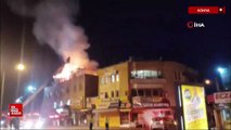 Konya'da 2 katlı binanın çatı katında yangın çıktı