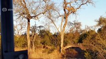 A YOUNG LEOPARD CUB WATCHING A COUPLE OF HYENAS FROM THE SAFETY OF A TREE. A reqminder of how empty our beautiful planet would be without wildlife! Why not start a conversation with someone around you today on the importance of protecting wildlife?