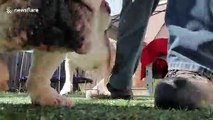 Dora, the chicken, came up to her owner's doorstep and got into the egg laying position. Her owner immediately knew what she was going to do and even tried to stop her. However, before they could do anything, Dora laid an egg on their doorstep and then fled without so much as a backward glance, leaving her owner bewildered.