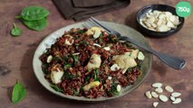 Riz rouge sauté au poulet et aux épinards