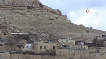 MARDİN - Mardin'in Mazıdağı ilçesinde kopma riski taşıyan yüksekte bulunan dev taş parçaları, köy halkını tedirgin ediyor. Köylüler, kayaların kopmasına ramak kaldığını, şiddetli bir depremde dev taş parçalarının can ve mal kaybına neden olabileceğini ve geceleri korku içinde uyuduklarını söyledi.