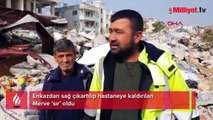 KAHRAMANMARAŞ merkezli depremlerde enkaza dönüşen Hatay'ın İskenderun ilçesindeki Sarıgül Melek Hatun Apartmanı'nda anne ve babasıyla enkaz altında kalan Merve Ateş (26), sağ kurtarıldı.