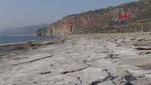 ANTALYA'nın Gazipaşa ilçesi Selinus sahilinde, Kahramanmaraş depremleri sonrası deniz suyunun yaklaşık 2 metre çekildiğini belirten işletmeci Fevzi Kileci, suyun çekilmesiyle kayalıkların daha fazla ortaya çıktığını söyledi.