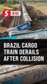 Cargo train derails after colliding with a truck in Brazil