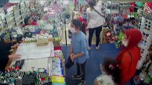 Kadınlardan biri altınları cebine koyup mağazadan ayrıldı, bu anlar kameraya yansıdı.