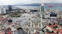 Taksim Camii'ne asılan mahya havadan görüntülendi