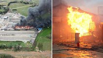 DEPODA PATLAMALAR OLUYORYanan fabrikadan yükselen dumanlar gökyüzünü kapladı. İtfaiye ekiplerinin 2 saattir söndürme çalışmaları devam ederken depoda patlamalar sürüyor.