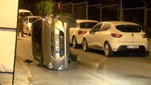 KÜTAHYA'da sürücüsünün direksiyon hakimiyetini kaybettiği otomobil, 2 araca çarpıp takla attı.