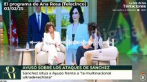 a presidenta de la Comunidad de Madrid, Isabel Díaz Ayuso ha conversado con Ana Rosa Quintana este lunes, 27 de marzo de 2023, en el matutino de Telecinco.