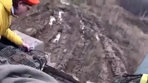 Kamel steckte knietief im Schlamm fest und wurde mit einem Bagger gerettet