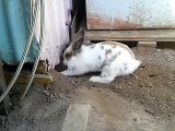 Lapin sauve son ami chaton, Rabbit rescues his kitten friend