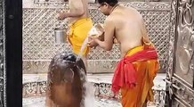 गंगा के जल से मां विन्ध्वासिनी धाम में देवी देवताओ के प्रतिमा का जलाभिषेक करते श्रद्धालु