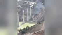 ARTVİN - Artvin'in Yusufeli ilçesinde baraj nedeniyle yeni yerleşim yerine taşınan ilçede yapımı devam eden viyadük ayakların hemen yanında bulunan yamaçta heyelan meydana geldi. Heyelan anı ise cep telefonu kamerasına saniye saniye yansıdı.