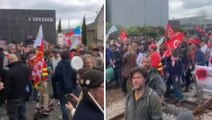 Fransa'da tartışmalı emeklilik reformu karşıtları Cumhurbaşkanı Emmanuel Macron'un ziyaret ettiği Loir-et-Cher vilayetinin Vendome kentindeki tren raylarına inerek eylem yaptı.
