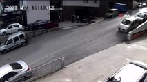 Çöp konteyneri faciaya neden oluyordu... Hızla giden çöp konteynerini gördü, tehlikeyi tekme ile savuşturdu