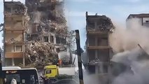 Kontrollü yıkım sırasında panik! Binanın üstüne çöktü