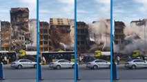 Kontrollü yıkım sırasında binanın büyük bölümü yıkıldı, o anlar kameraya yansıdı