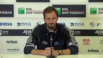 Pour la première fois en quatre participations, le numéro 3 mondial Daniil Medvedev est dans le dernier carré du Masters 1000 de Rome. Déjà autoritaire contre Alexander Zverev, ce jeudi, il a imposé sa loi à la surprise Yannick Hanfmann avec une victoire expéditive, 6-2, 6-2 en 1h20. De plus en plus à l'aise sur terre battue, le Russe monte en puissance dans la capitale italienne avant de partir à Roland-Garros, un tournoi qui se déroulera sans son champion Rafael Nadal. Ce jeudi, en conférence de presse, le Majorquin a annoncé son forfait, sans pouvoir donner de date de reprise, tout en ajoutant que la saison 2024 serait sa dernière. Sur le court après sa victoire, Medvedev s'est exprimé sur cette nouvelle.