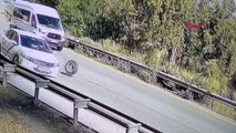Düzce'nin Gölyaka ilçesinde seyir halindeki bir otomobilin tekerinin yola fırlama anı güvenlik kamerasına yansıdı.