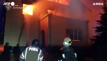 Kharkiv, edifici in fiamme dopo l'attacco missilistico russo